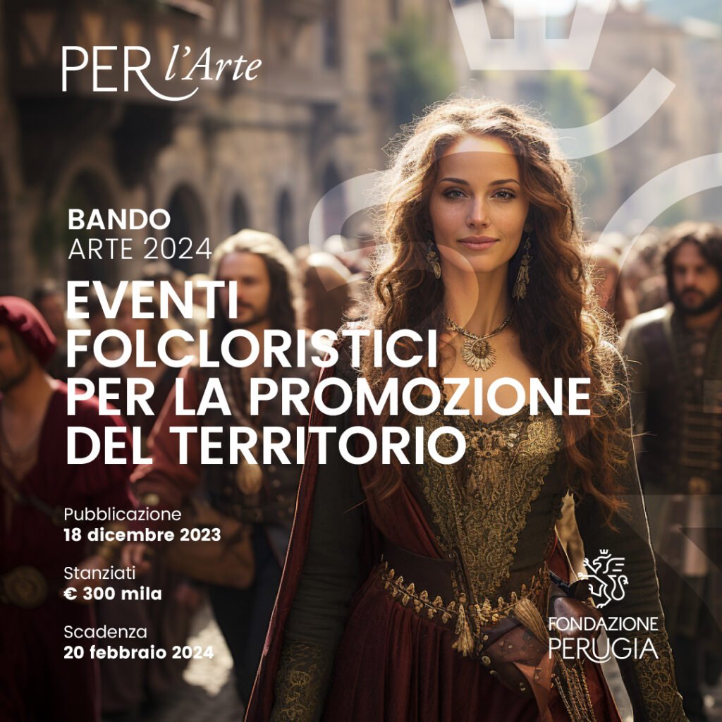 Fondazione Perugia pubblica il Bando di erogazione n. 1 del 2024 nel settore Arte, Attività e Beni Culturali. L’intento è sostenere eventi che traggano ispirazione da consolidate tradizioni popolari e folcloristiche che hanno la finalità di promuovere lo sviluppo socio-economico del territorio di riferimento di Fondazione Perugia.