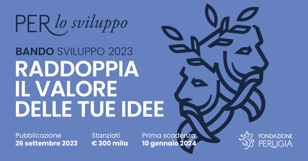Fondazione Perugia lancia un nuovo bando in cofinanziamento con le imprese, “Raddoppia il valore delle tue idee“, destinato agli enti del Terzo Settore operanti nel suo territorio di riferimento. La scadenza per la presentazione della prima proposta progettuale è fissata al 10 gennaio 2024.