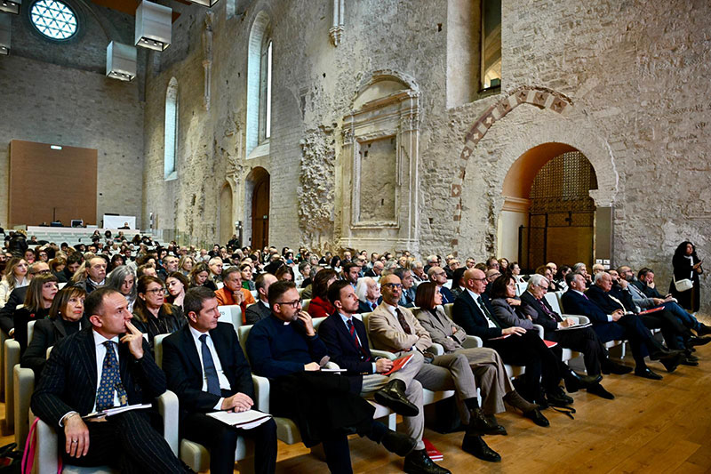 La presentazione del Documento Programmatico Triennale 2026–2028 di Fondazione Perugia si è svolta il 22 novembre all’Auditorium San Francesco al Prato, uno spazio gremito che ha accolto istituzioni, rappresentanti del territorio e numerosi partecipanti. L’incontro, condotto dalla giornalista RAI Elisa Marioni, ha visto la presenza delle principali istituzioni umbre, invitate sul palco dal Presidente di Fondazione Perugia Alcide Casini: Stefania Proietti, Presidente della Regione, Vittoria Ferdinandi, Sindaca di Perugia, e Massimiliano Presciutti, Presidente della Provincia. Una partecipazione ampia che ha sottolineato l’importanza del nuovo Documento nel percorso di crescita e coesione dell’Umbria.