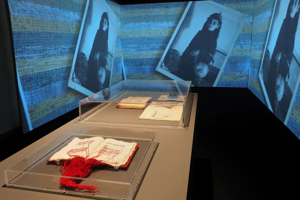 Grazie ad un percorso espositivo sorprendente e innovativo, gli stemmi con leoni, grifoni, cigni e altre figure araldiche si confrontano con l’immaginario di Bertozzi & Casoni, Wim Delvoye, Gabriele Arruzzo e Luigi Serafini; i motivi geometrici delle pergamene trovano corrispondenze nelle opere di Cannavacciuolo, Tremlett e Beverly Pepper; segni, trame e linee risuonano nei lavori di Bianchi, Dessì, Boetti e Griffa; simboli enigmatici e arcaici si riflettono nelle visioni di La Pietra, Ontani, Paladino e Tilson; le pergamene segnate dal tempo, tra strappi, cuciture, cancellature trovano una risonanza intensa nelle opere di Isgrò, Novelli e Maria Lai, in un intreccio di scritture, memoria e materia che restituisce al presente la voce viva del passato.